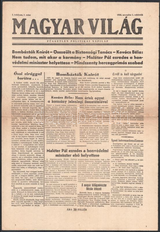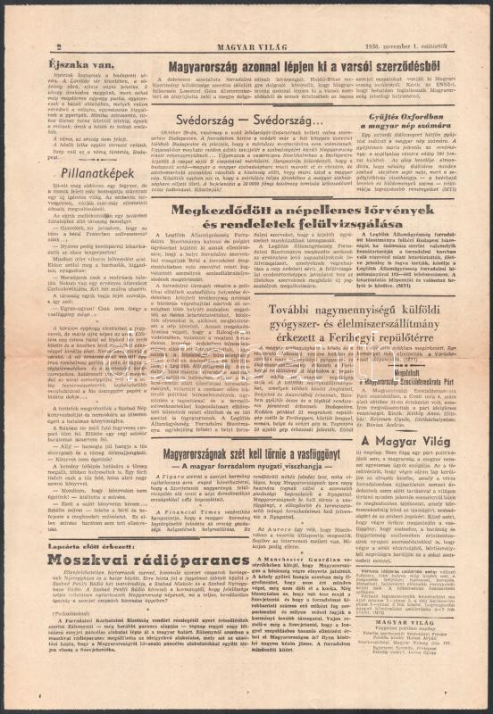 1956 Magyar Világ. 1956. nov. 1. I. évf. 1. szám., 2 p.