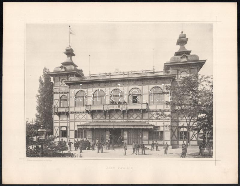 Zene pavillon, Országos Általános Kiállítás (1885), Kozmata Ferenc Műintézete (Budapest). Fénynyomat, papír, jelzett a nyomaton, 25,5x33,5 cm