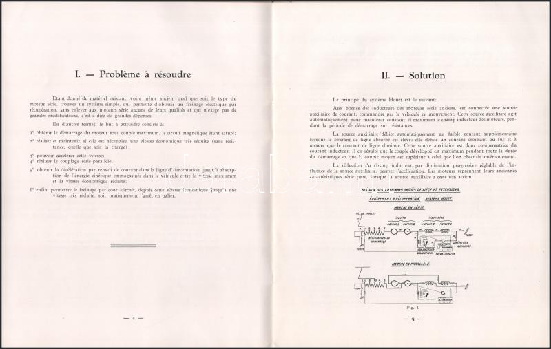 Description: cca 1920 Freinage Electrique par Récupération d'Energie sur les voitures de tramways équipées de deux moteurs série közlekedéssel kapcsolatos kiadvány, 15p