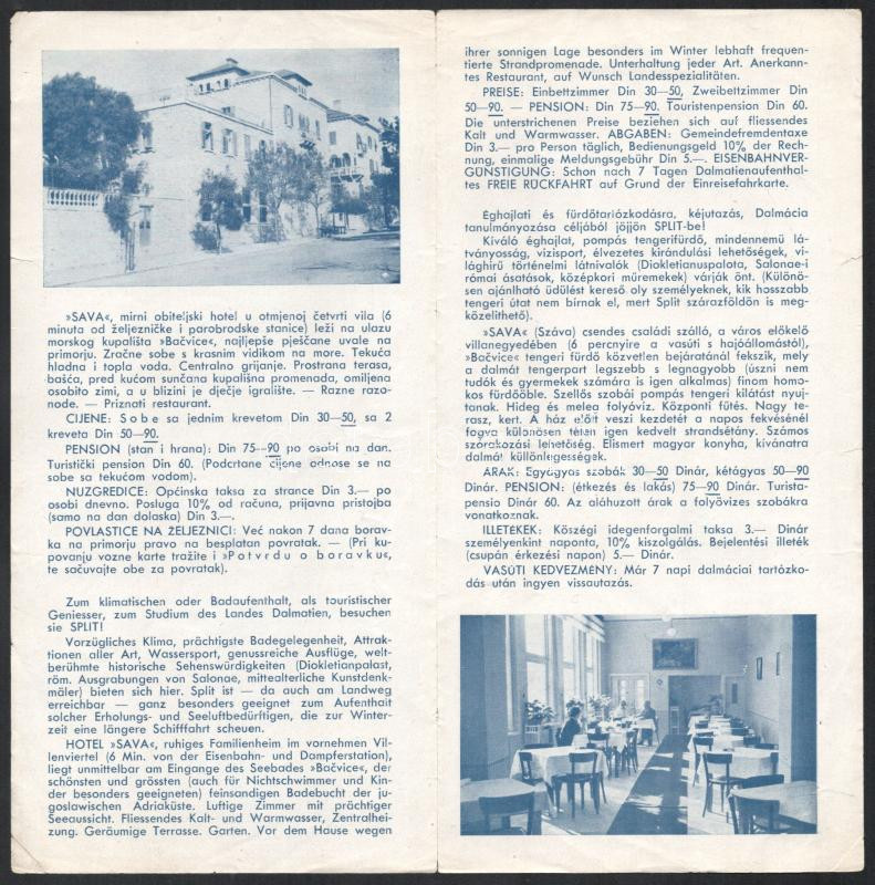 cca 1930 Hotel Sava Split, magyar, szláv, angol és német ny. képes kih... https://www.darabanth.com/en/43-Major-auction/43.1/Art-sculptures-paper-and-other-collectibles/Printed-Materials~17566/cca-1930-Hotel-Sava-Split-magyar-szlav-angol-es-nemet-ny-kepes-kihajthato-jugoszlav-turisz~II3234043