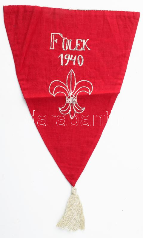 1940 Füleki cserkészcsapat eredeti hímzett zászlója, hátoldalon a vár ... https://www.darabanth.com/en/43-Major-auction/43.1/Art-sculptures-paper-and-other-collectibles/Scout~17561/1940-Fuleki-cserkeszcsapat-eredeti-himzett-zaszloja-hatoldalon-a-var-kepevel-szep-allap~II3233609