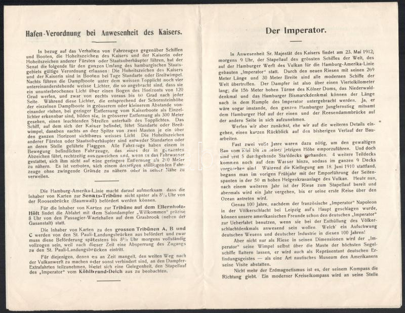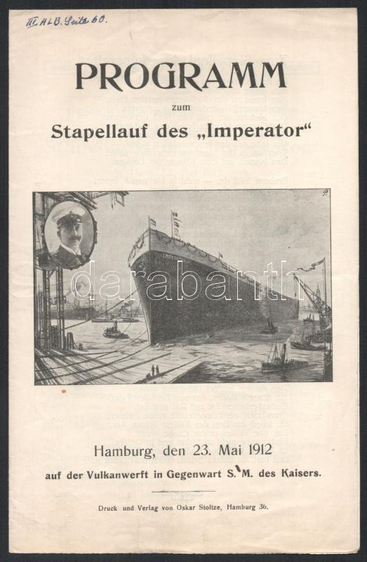 1912 A Hamburg America Line SS Imperator óriáshajó vízre bocsátásának ... https://www.darabanth.com/en/43-Major-auction/43.1/Art-sculptures-paper-and-other-collectibles/Ships-Balaton~17562/1912-A-Hamburg-America-Line-SS-Imperator-oriashajo-vizre-bocsatasanak-programfuzete-es-4-db~II3233349