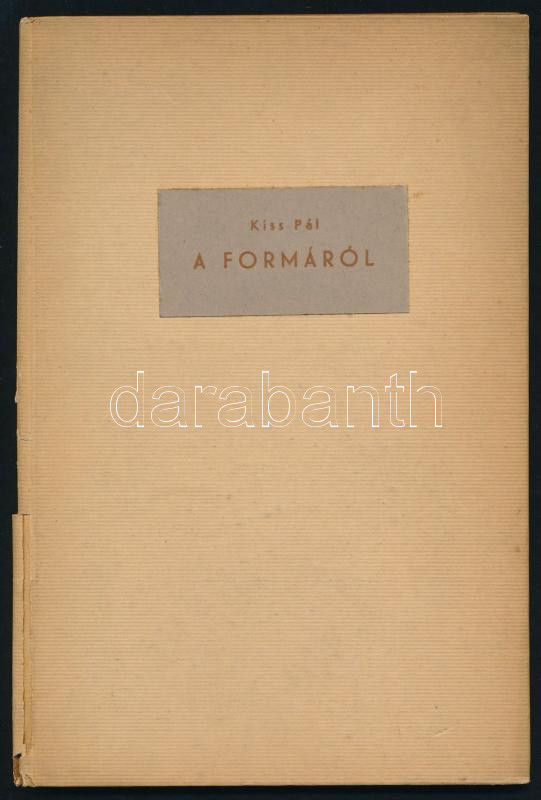 [Gegesi] Kiss Pál: A formáról. Elmondotta Bán Béla képeinek kiállításán. Bp., 1946, (Független-ny.), 15+2 p. Kartonált papírkötés, sérült gerinccel. Számozott (4./25) példány!