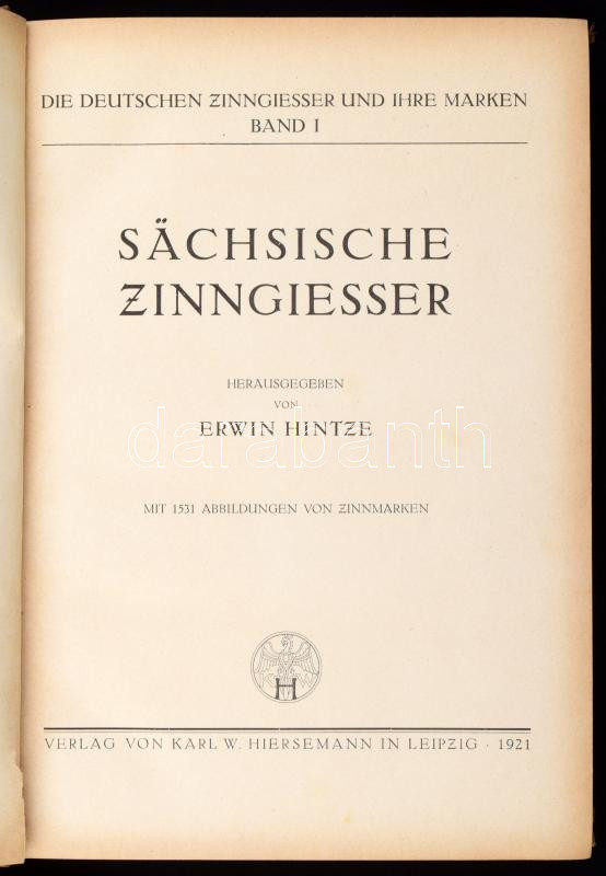 Die deutschen Zinn... https://www.darabanth.com/en/43-Major-auction/43.1/Books/Books-Architecture-Art~17894/Nemet-onjelzesek-kepes-katalogusa-Hintze-Erwin-Die-deutschen-ZinngieC39Fer-und-ihre-Marken-I~II3204855