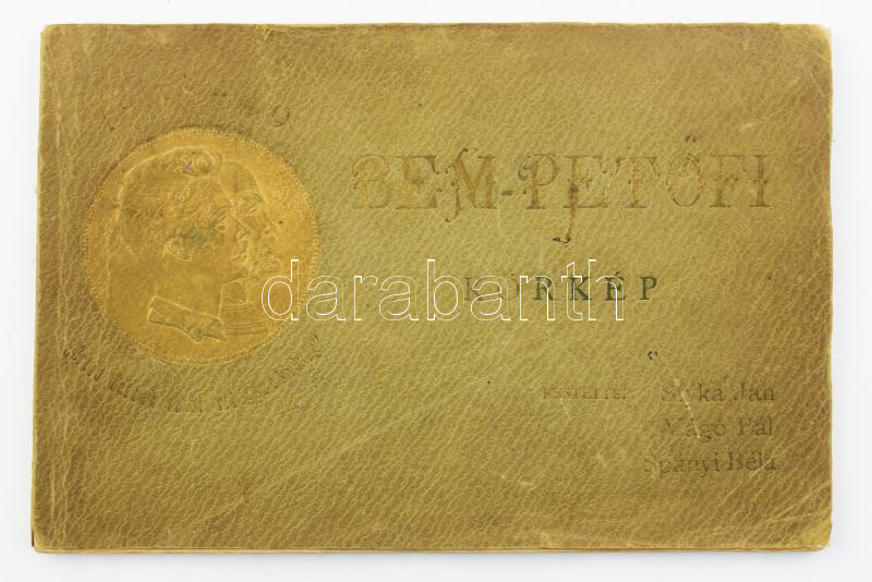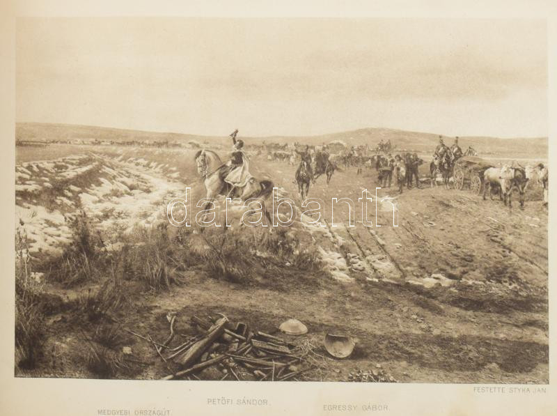 1898 Nagy-Szeben bevétele 1849. márczius 11-én. Bem-PetÅ‘fi körkép. Festette: Styka Jan, Vágó Pál és Spányi Béla. Bp., 1898. WerbÅ‘czy Könyvnyomda Rt., 15+1 p.+12 (fekete-fehér képtáblák) t. Kiadói aranyozott papÃrkötésben, kopott borÃtóval, kopott borÃtóval, a borÃtó belsején javÃtásokkal, foltos cÃmlappal, a cÃmlapon kis szakadásokkal,