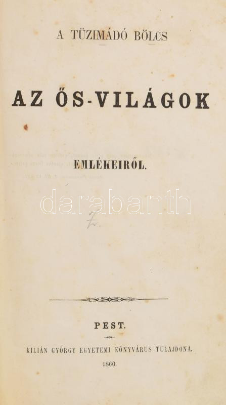 [Rónai Jácint] A tüzimádó bölcs az ős-világok emlékeiről. Pest, 1860.,...