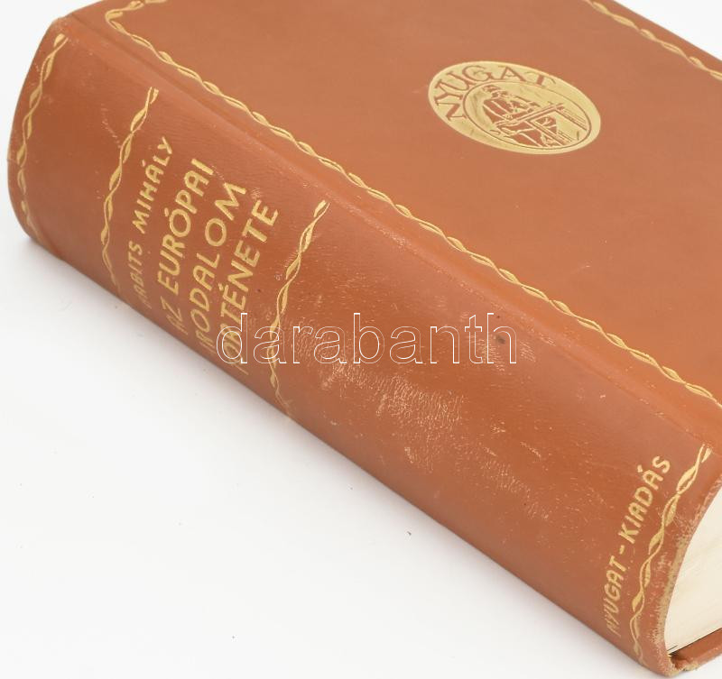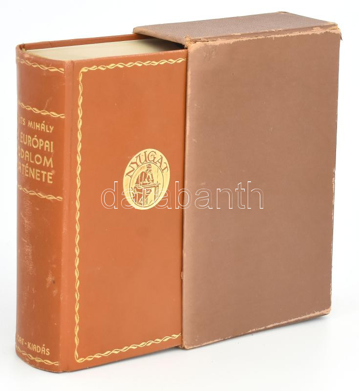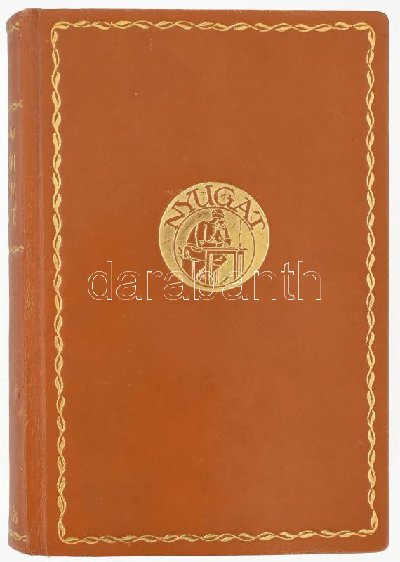 Babits Mihály: Az európai irodalom története (aláÃrt, számozott példány). [Budapest], é. n., Nyugat Kiadó és Irodalmi R. T. (Elek Nyomda, Bp.), 728 p. Babits Mihály (1883-1941) költÅ‘, Ãró, irodalomtörténész, műfordÃtó kézjegyével, autográf aláÃrásával ellátott és számozott (63./200) példány. EbbÅ‘l az átdolgozott és bÅ‘vÃtett végleges kiadásból a könyvgyüjtÅ‘k számára 200 amatÅ‘r-példány is készült famentes offset-papiroson, egészbÅ‘rkötésben, az Ãró kézjegyével. Kiadói aranyozott Nyugat emblémával ellátott, Rudas könyvkötészet műhelyében készült egészbÅ‘rkötésben, aranyozott gerincen kisebb felületi kopásnyomokkal, borÃtó hátoldalán egészen apró sérüléssel. Kiadói vászonborÃtású, kopott karton tékában. Bibliofil, becses gyűjtÅ‘i ritkaság!