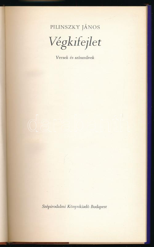 Pilinszky János: Végkifejlet. Versek és színművek. A szerző, Pilinszky... https://www.darabanth.com/en/43-Major-auction/43.1/Books/Books-Other-rarities~17601/Pilinszky-Janos-Vegkifejlet-Versek-es-szinmuvek-A-szerzo-Pilinszky-Janos-1921-1981-alt~II3109257