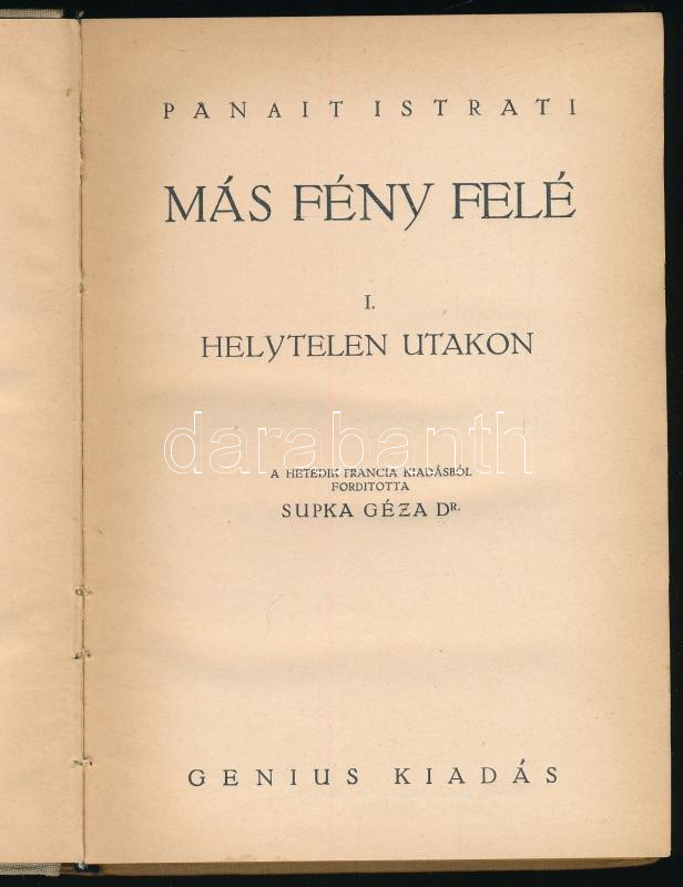 Panait Istrati: Más fény felé I. Helytelen utakon. Bp., Genius. BETILTOTT! Kiadói egészvászon kötés, gerinc kissé sérült, kissé kopottas állapotban.