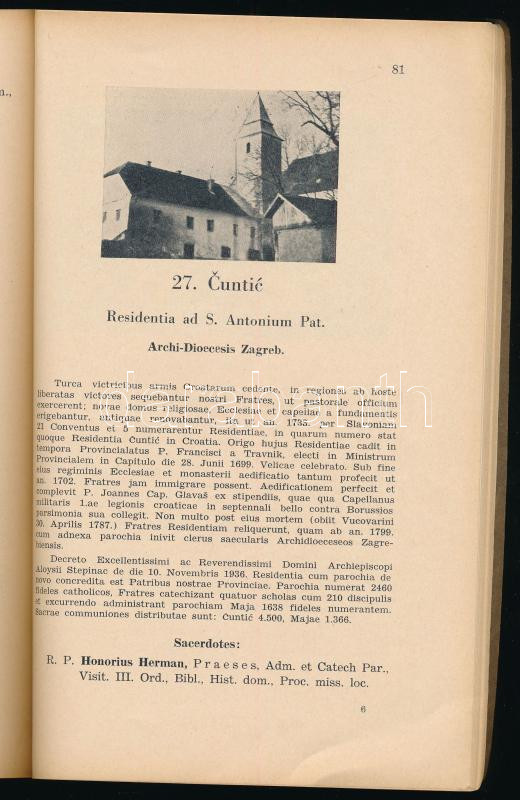 Schematismus Provinciae Croatiae SS. Cirilli et Methodii ordinis fatrum minorum. Zagreb, 1940, E Typographia Franciscana. Kiadói papírkötés, fekete-fehér képekkel illusztrált, jó állapotban.