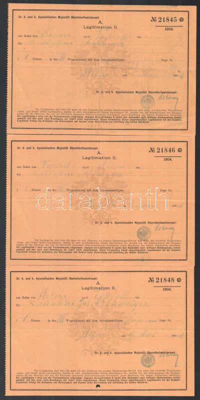 1906 A Habsburg császári udvar részéről kiállított 3 db utazási igazolvány, kísérete részére. /