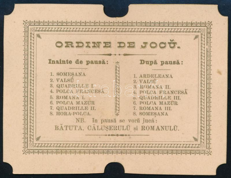 1893 "Ball Asociatiunei Transilvane din 8 Octobre 1893 in Naseudu", Bistrita (Beszterce), Tip. C. Orendi-ny. A román nemzeti ébredésben hatalmas szerepet játszó, ASTRA (Asociatia Transilvana pentru Literatura Romana si Cultura Poporului Roman/Erdélyi Egyesület a Román Irodalomért és a Román Nép Kultúrájáért) táncrendje, Naszód, 1893. okt. 8., román nyelven.