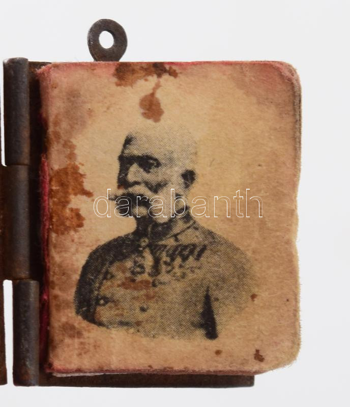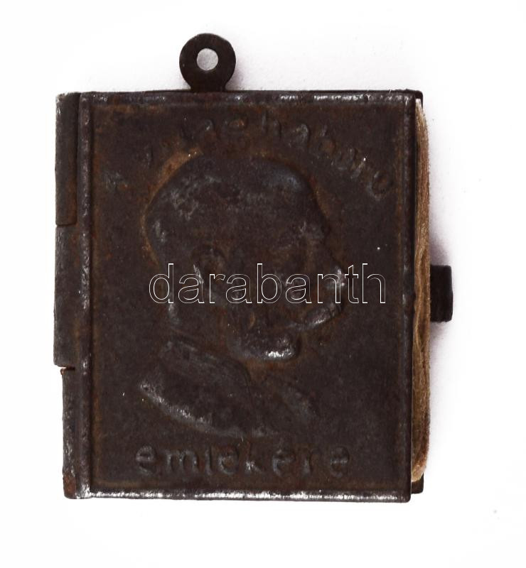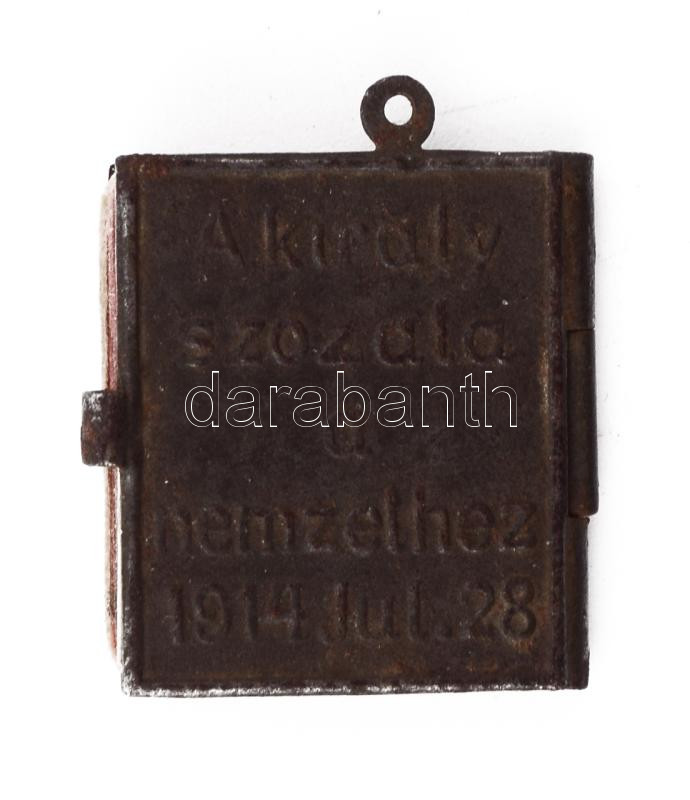 1914 Ferenc József: Népeimhez! Minikönyv medál dombornyomott fém borÃtóval, " A világháboru emlékére - A király szózata a nemzethez 1914. jul. 28." (az I. világháború kitörésekor), 24x22mm