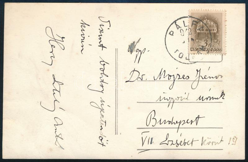1942 Pálfa, Apponyi-kastélyt ábrázoló képeslap, hátoldalán Herceg Esterházy Antal saját kezű írása és aláírása