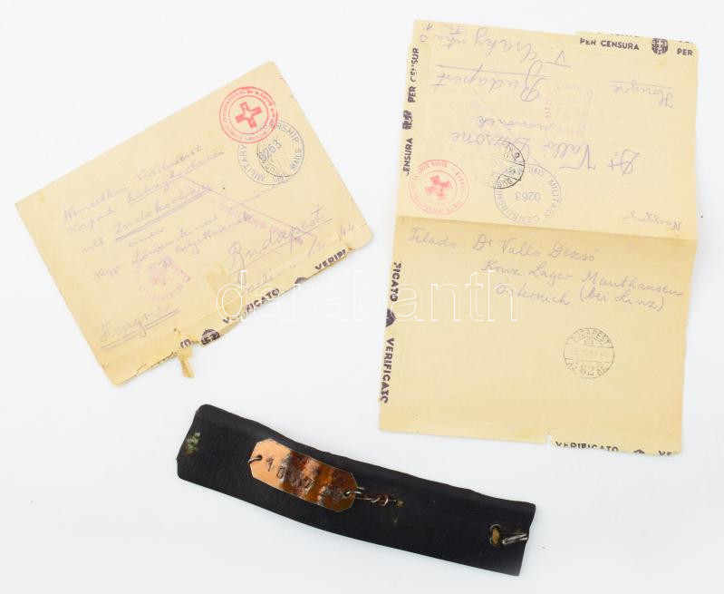 1945 Mauthausen-i koncentrációs tábor rab karkötője és 2 db vöröskeresztes levelezőlap