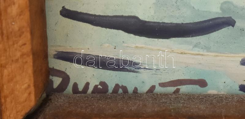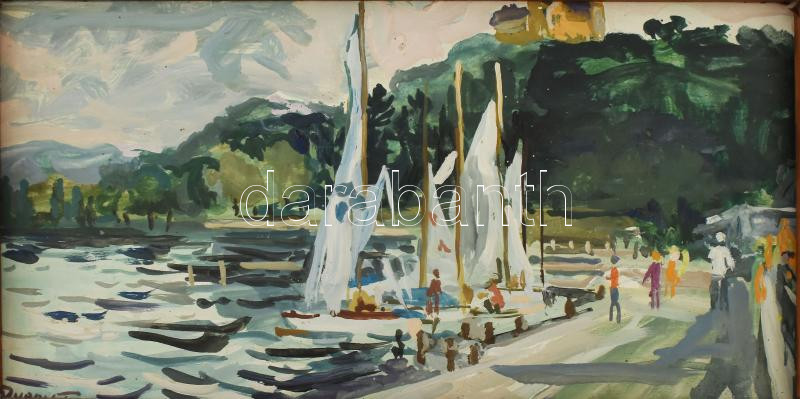 Duray Tibor (1912 - 1988): Vitorlások a kikötőben. Tempera, farost, jelezve balra lent: Duray T.. 13x24 cm. Fakeretben.