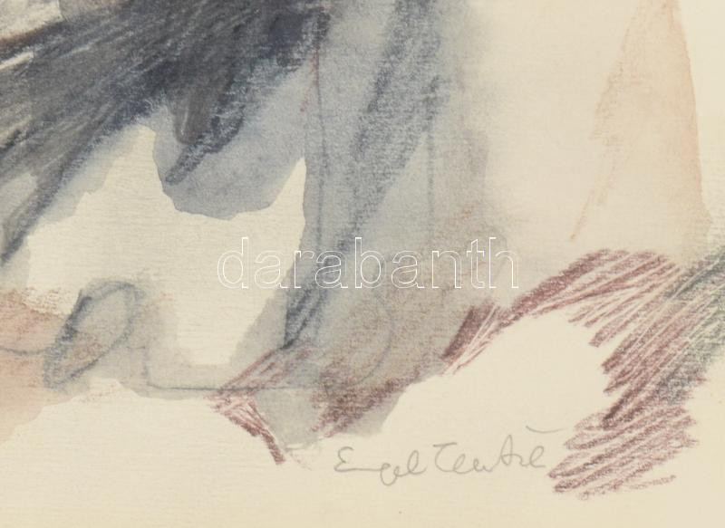 Description: Engel Tevan István (1936-1996): Sámson tette. Vegyes technika, papír, jelezve jobbra lent, üvegezett fakeretben, 33,5×43 cm / mixed technique on paper, signed lower right, framed