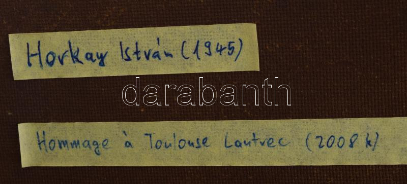 Horkay István (1945): Hommage a Toulouse-Lautrec. Vegyes technika, kol... https://www.darabanth.com/en/43-Major-auction/43.1/Paintings-and-graphics/Contemporary-paintongs-and-graphics~17607/Horkay-Istvan-1945-Hommage-a-Toulouse-Lautrec-Vegyes-technika-kollazs-farost-jelezve-jobbra~II3229289