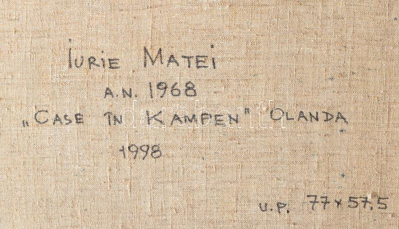 Description: Jurie Matei (1968-): Vidéki ház (Kampen, Hollandia). Akril, vászon, jelezve hátoldalon: Jurie Matei A. N. 1968 "Case in Kampen" Olanda 1998. 77x57,5 cm, keretben, sérült. / House in Campen, Holland, acrylic on canvas