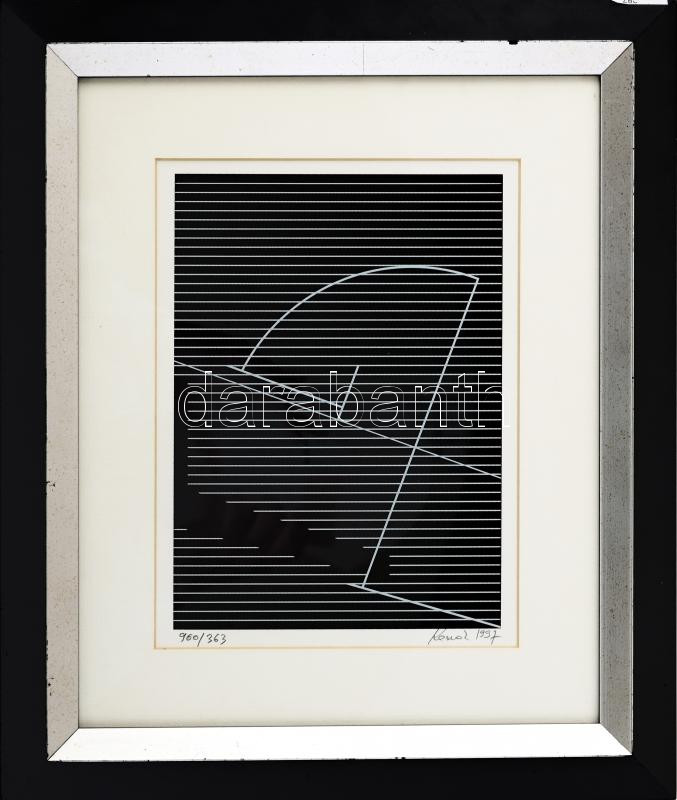 Konok Tamás (1930-2020): Geometrikus kompozíció, 1997. Szitanyomat, papír, jelzett. Számozott: 900/363. Üvegezett fakeretben. 20×14,5 cm / Screenprint on paper, signed, numbered: 900/363. Framed with glass.