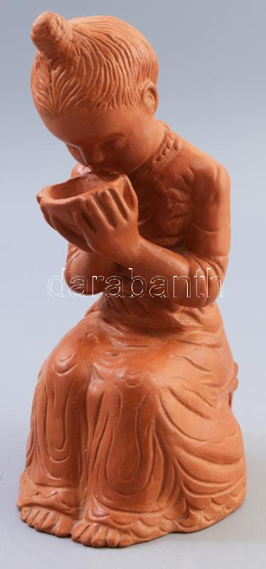 Description: Kovács Margit (1902-1977): Ivó lány. mázas kerámia, jelzett, 23 cm /// Margit Kovács (1902-1977): Drinking Girl. Glazed ceramic, signed, height: 23 cm"