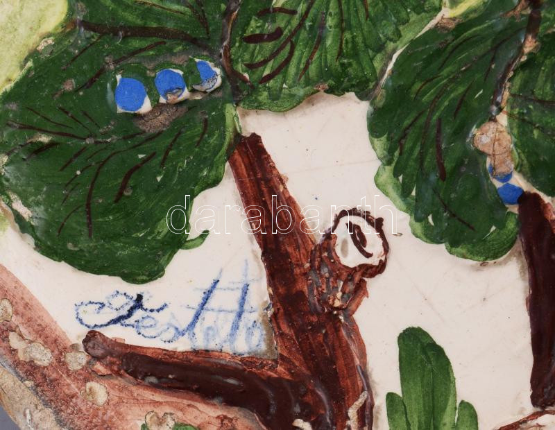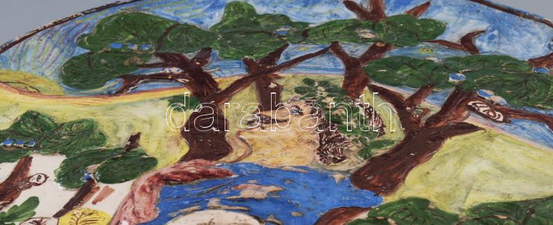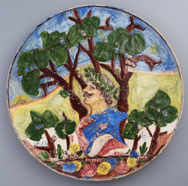 cca 1920, Hódmezővásárhely, Hunyadi Jánost ábrázoló nagyméretű dísztál. Jelzett, korának megfelelő mázsérülésekkel, kopottsággal, d: 37 cm. KIZÁRÓLAG SZEMÉLYES ÁTVÉTEL, NEM POSTÁZZUK! /// Circa 1920, Hódmezővásárhely, large decorative plate depicting John Hunyadi. Signed, with typical wear and glaze damage for its age, diameter: 37 cm.ONLY PERSONAL COLLECTION, WE DO NOT SHIP / ONLY PERSONAL COLLECTION IN OUR OFFICE!