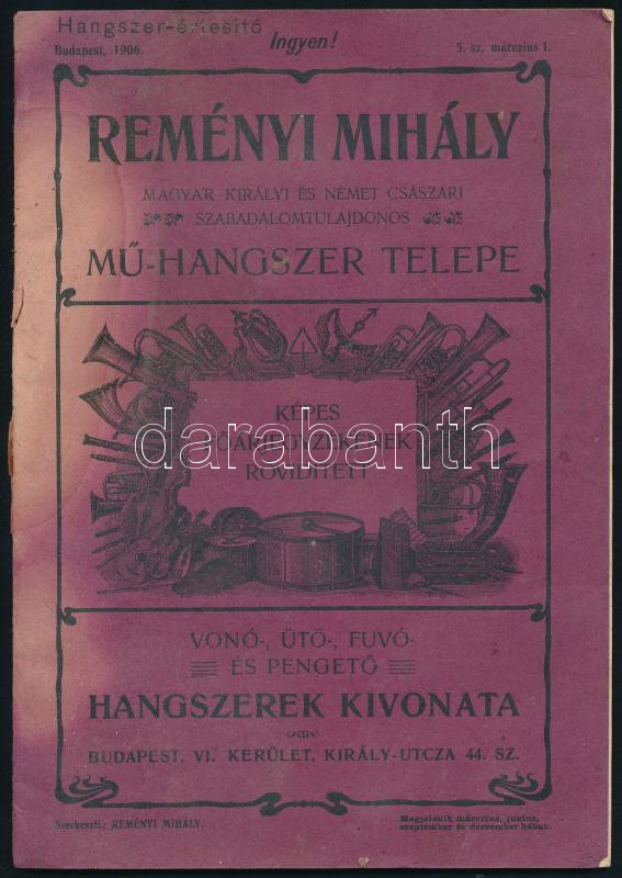 1906 Reményi Mihály magyar királyi és német szabadalomtulajdonos műhan... https://www.darabanth.com/en/430-Online-auction/430.0/Art-and-other-collectibles/Advertisement~500024/1906-Remenyi-Mihaly-magyar-kiralyi-es-nemet-szabadalomtulajdonos-muhangszeresz-kepes-fo-ar~II2764045