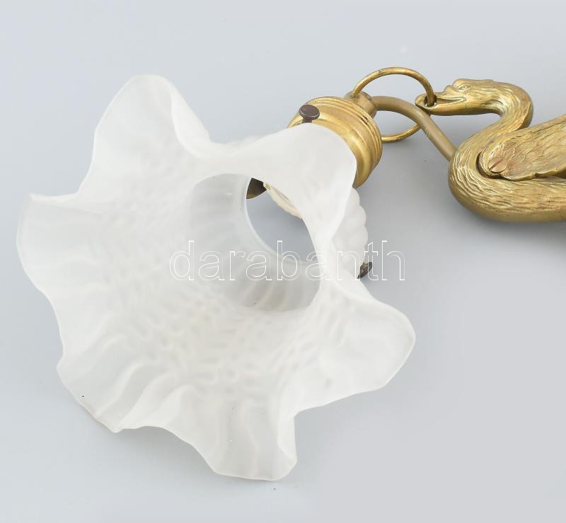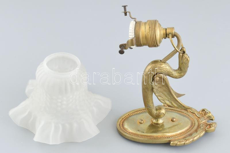 Bronz falikar, szárnyas griff madaras, új kábelezéssel, szecessziós üveg búrával. 16x15 cm