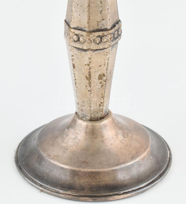 Talpas ezüstözött kínáló, hibátlan üvegbetéttel, kopott, m: 22,5 cm