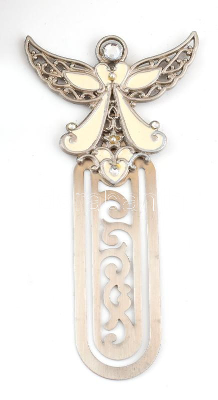 Shudehill díszes fém könyvjelző, zománcozott, pillangó vagy angyal motívummal. Eredeti dobozában, h: 11 cm