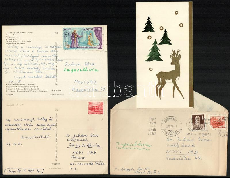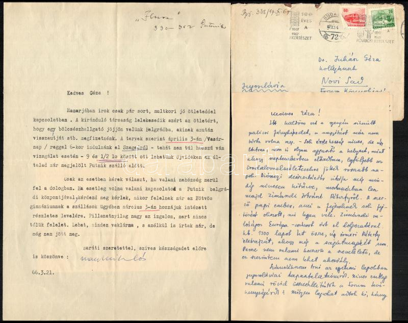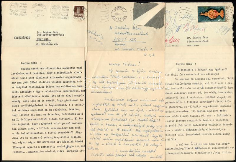 Description: 1966-72 Nagy Miklós (1924-2002) magyar irodalomtörténész, egyetemi tanár, 16 db levele Juhász Gézának (1924-2005), a Forum Könyvkiadó újvidéki felelős szerkesztőjével, részben eredeti borítékban