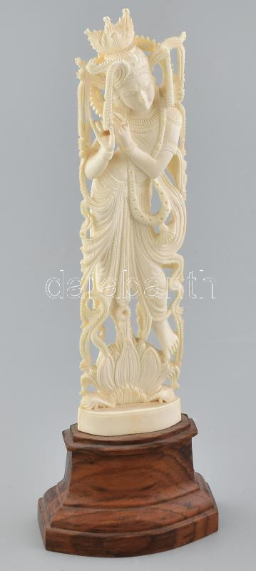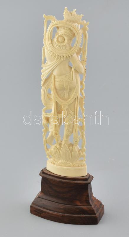 Jelzés nélkül: Visnu, ( a hinduizmusban az isteni hármasság egyik alakja). Kézzel faragott csont, fatalapzaton. Fuvolája hiányzik. M: 26,5 cm