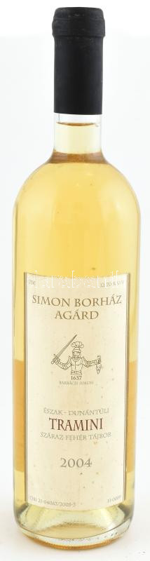 2004 Agárd Simon Borház tramini fehér tájbor. Bontatlan palack, szakszerűen tárolt.