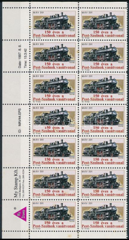 1997 150 éves a Pest-Szolnok vasútvonal levélzáró ívsarki 14-es tömb