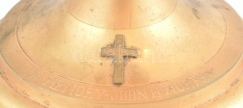 Description: Ezüst (Ag) felső résszel (csésze), keresztény liturgikus kehely, alja réz. jelzett: Sterling, Vésett: Im Memory-John Murphy. Kopásokkal, m: 21,5 cm. nettó: 104,8g