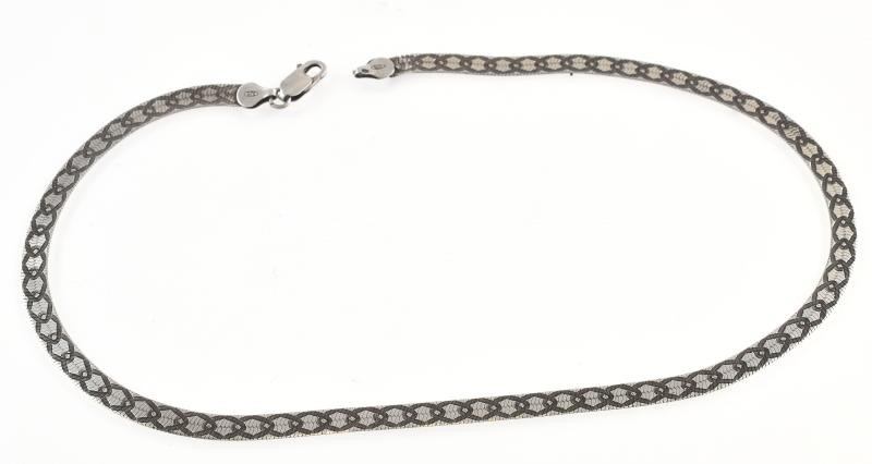 Ezüst(Ag) lapos, mintás kígyó nyaklánc, jelzett, h: 43 cm, nettó: 12,2 g