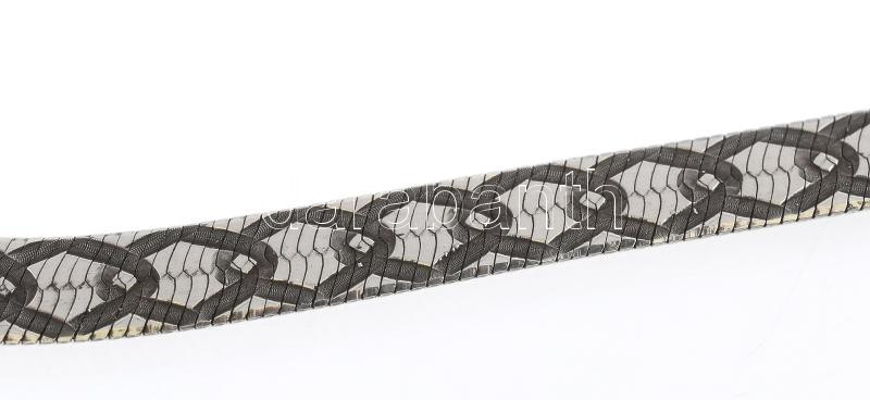 Ezüst(Ag) lapos, mintás kígyó nyaklánc, jelzett, h: 43 cm, nettó: 12,2...