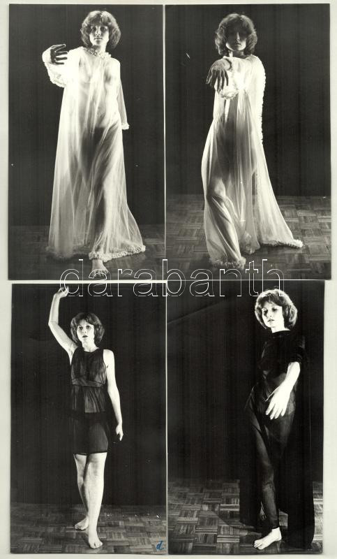 Description: Az éj királynője - cca 1978 előtt készült, szolidan erotikus felvételek, 4 db vintage fotó jelzés nélkül, ezüst zselatinos, vékony (ún. doku) fotópapíron, 21x12 cm