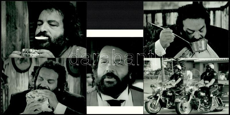 Bud Spenzer (1929-2016) olasz színész különféle filmekben, a néhai Lapkiadó Vállalat fotólaborjának archívumából 5 db mai nagyítás, 10x15 cm