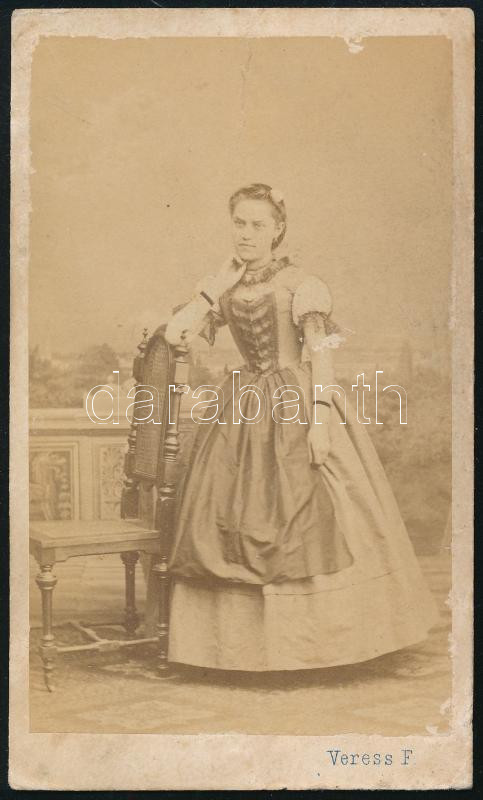 cca 1870 Fiatal hölgy. Kolozsvár, Veress Ferenc műterme vizitkártya