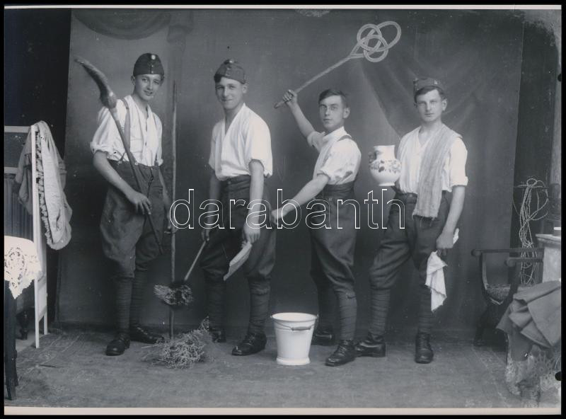 cca 1925 Eger, katonai ,,kommandó" a hétvégi nagytakarításkor, Gráf Rudolf egri fényképész hagyatékából 1 db mai nagyítás, 17,7x24 cm