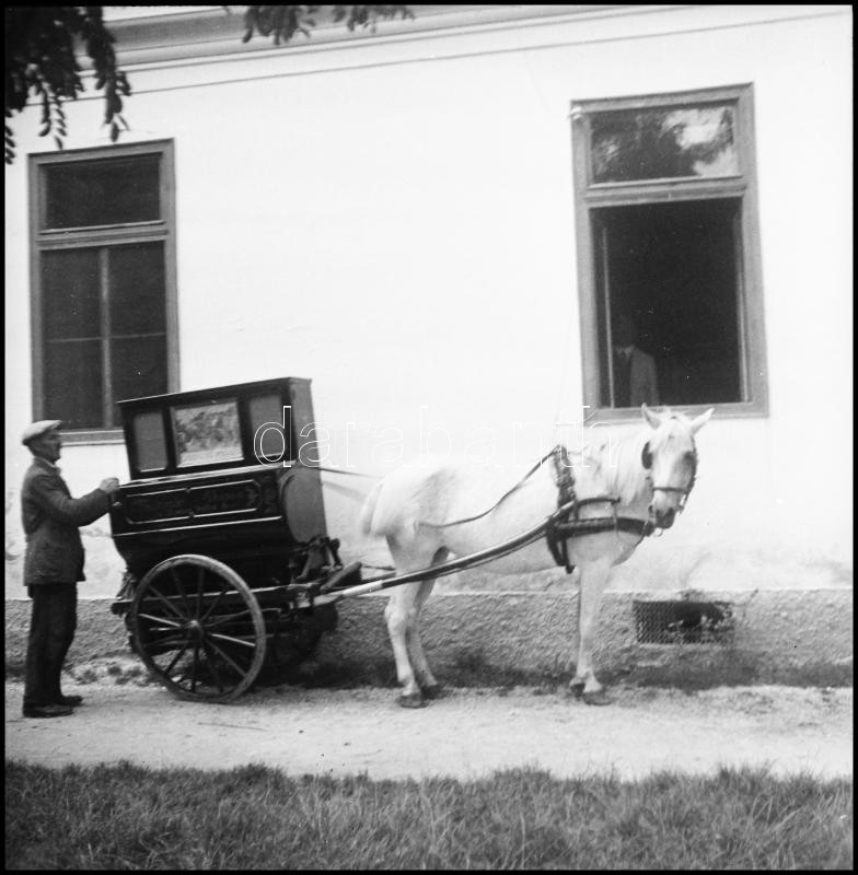 cca 1925 Ló vontatta wurlitzer, zenegép fotónegatív 6x6 cm