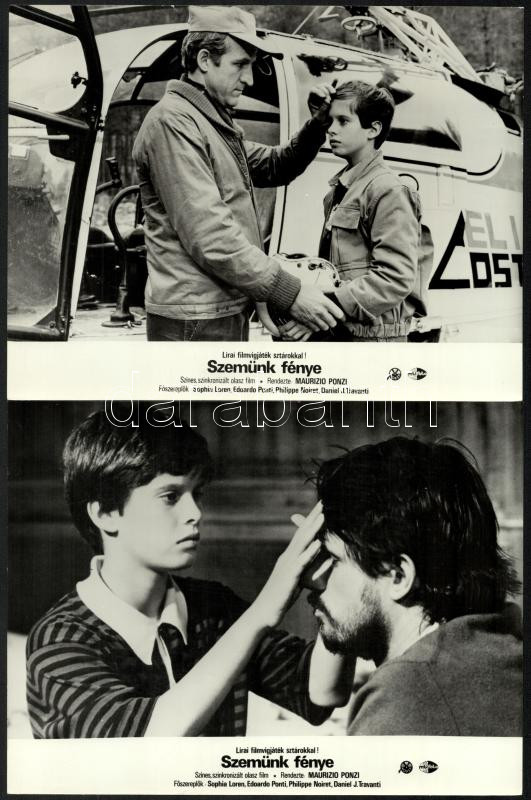 Description: cca 1984 ,,Szemünk fénye" című olasz film jelenetei és szereplői (főszereplő Sophia Loren és fia Edoardo Ponti), 8 db vintage produkciós filmfotó, ezüst zselatinos fotópapíron, a használatból eredő - esetleges - kisebb hibákkal, 18x24 cm