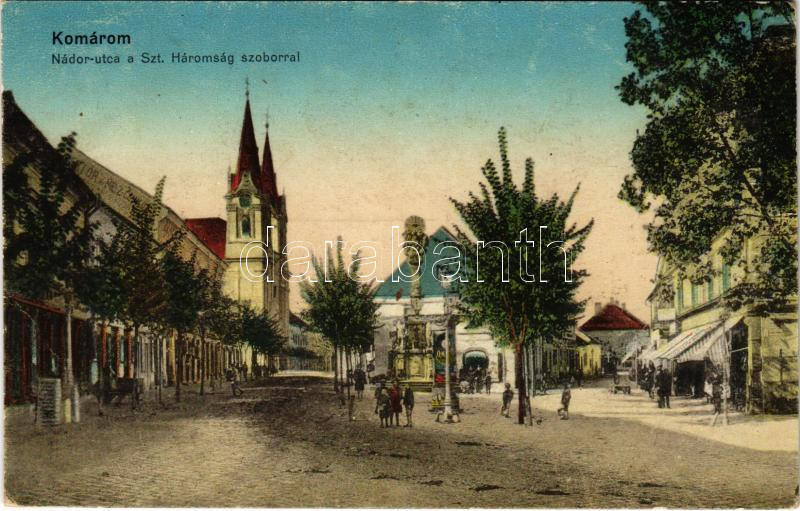 https://www.darabanth.com/en/430-Online-auction/430.0/Postcards/Slovakia~1500006/1916-Komarom-Komarno-Nador-utca-Szentharomsag-szobor-uzletek-Czike-Denes-kiadasa-stre~II2762612