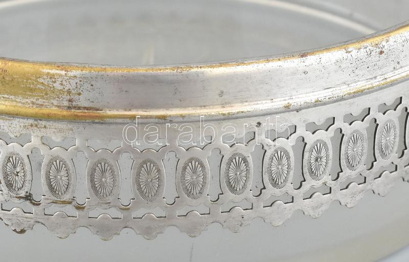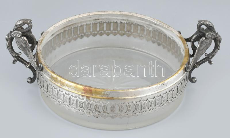 Dekoratív hattyús kínálótál, csiszolt üveg, fém kerettel, jelzés nélkü...