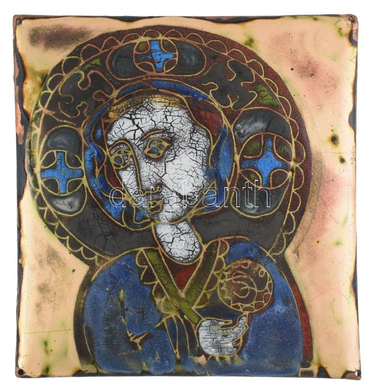 Olvashatatlan jelzéssel: Madonna. Tűzzománc, rézlemez. 13x13 cm