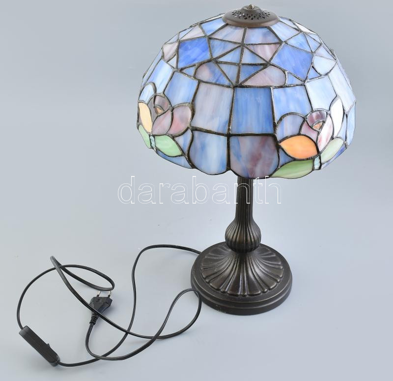 Tiffany jellegű lámpa. Ólomüveg, Működőképes, jó állapotban m: 47 cm, ...