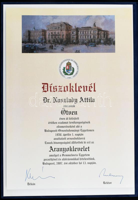 2007 SOTE díszoklevél mappában, aláírásokkal