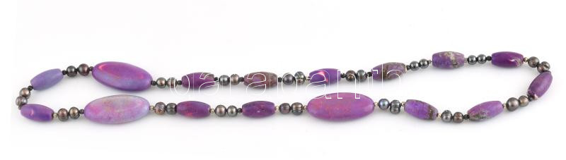 Magnezit és tenyésztett gyöngy nyaklánc, h: 64cm