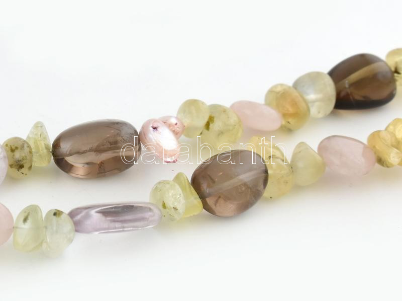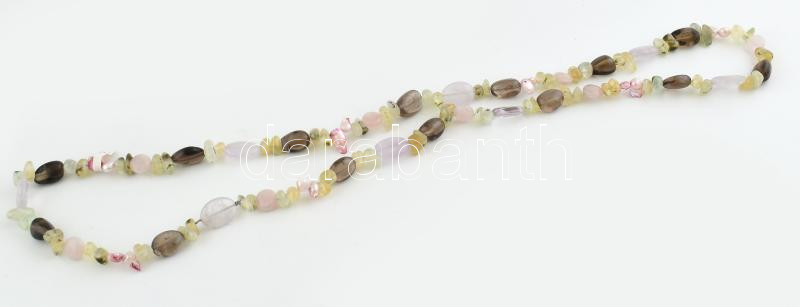 Prehnit, füstkvarc, rózsakvarc és tenyésztett gyöngy nyaklánc, h: 47 cm